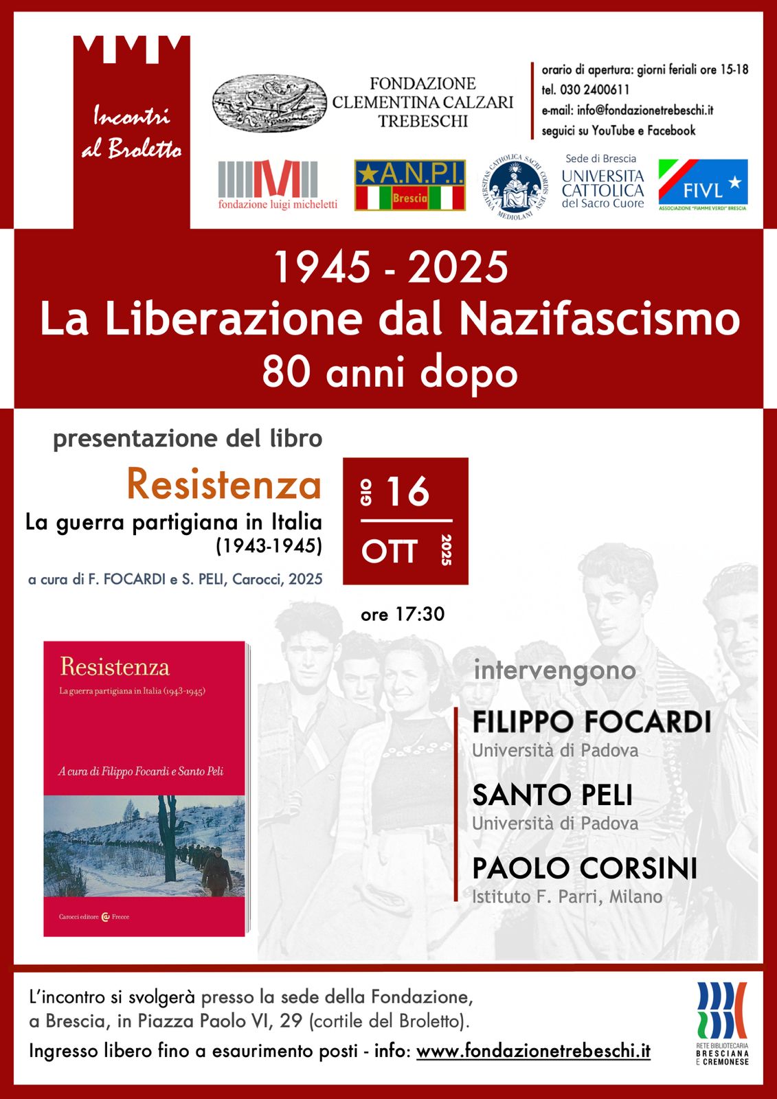 Presentazione del libro Resistenza La guerra partigiana in Italia (1943-1945) a cura di F. Focardi e S. Peli Intervengono: Filippo Focardi, Università di Padova Santo Peli, Università di Padova Paolo Corsini, Istituto F. Parri, Milano.
