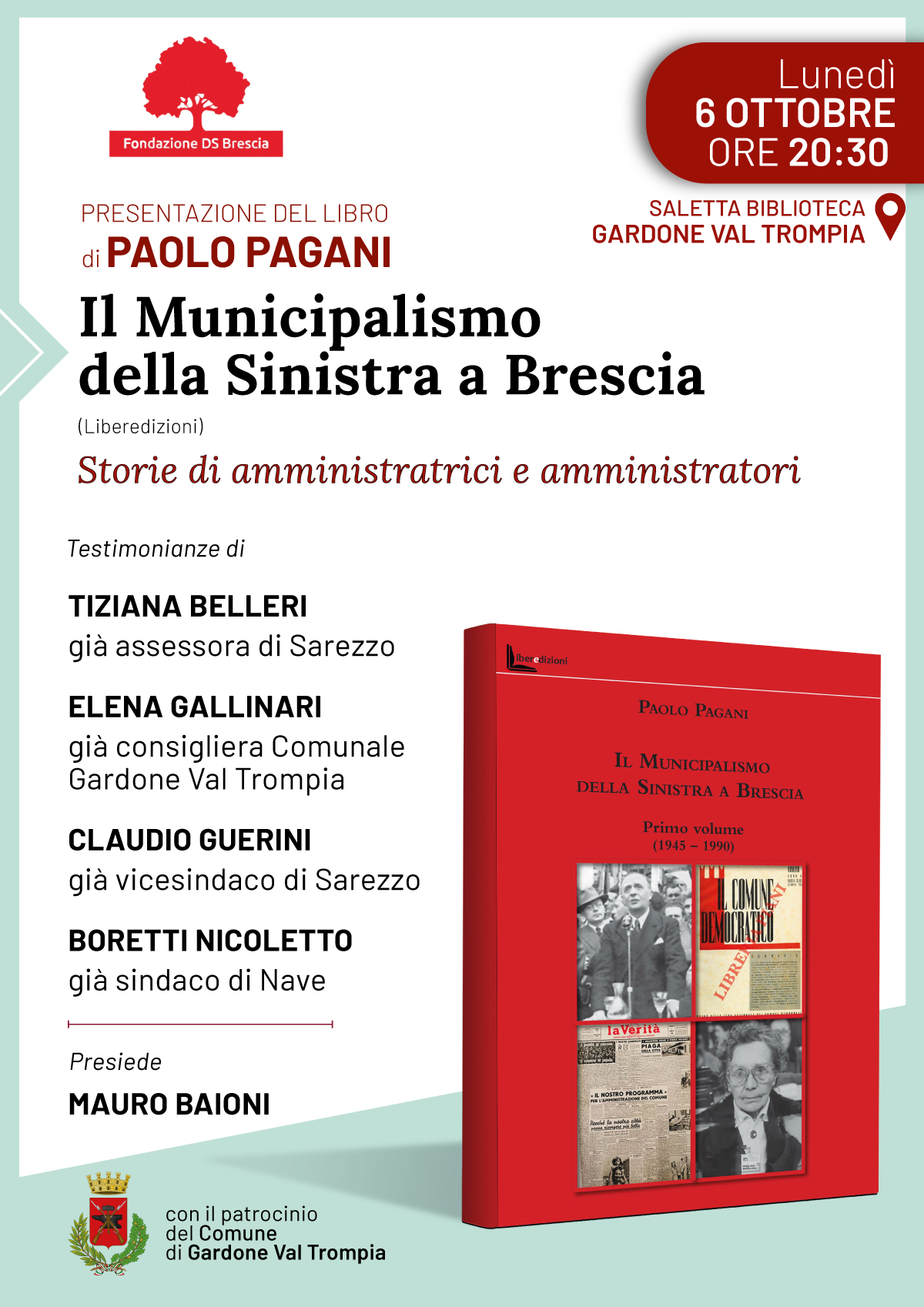La Fondazione DS Brescia, con il patrocinio del Comune di Gardone Val Trompia, presenta il volume di Paolo Pagani Il Municipalismo della Sinistra a Brescia. Storie di amministratrici e amministratori (Liberedizioni).