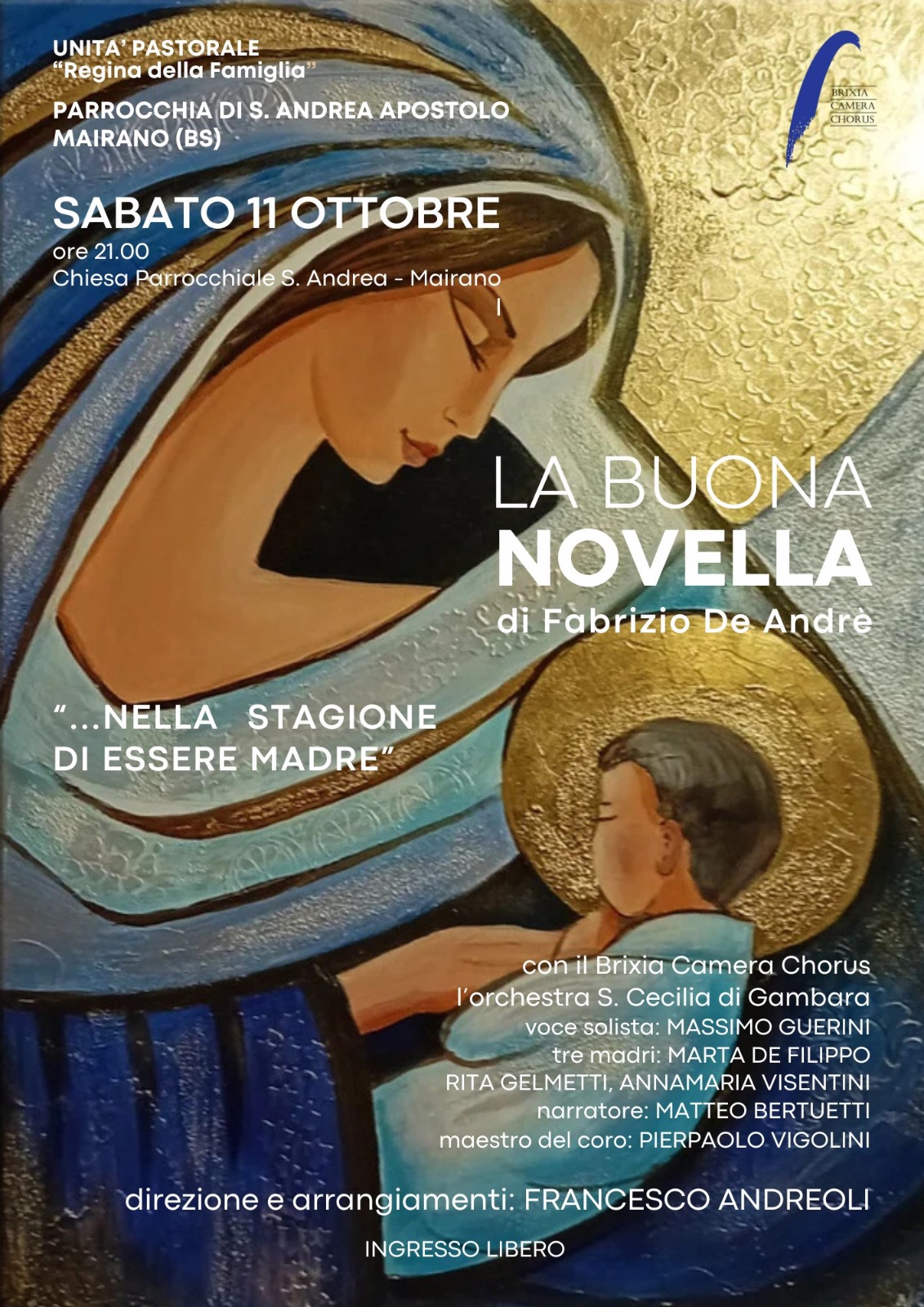 Più di 80 elementi renderanno omaggio al capolavoro di Fabrizio De André, La Buona Novella. Questo adattamento per voce narrante, soli, coro e orchestra - curato dall'attore Luciano Bertoli e dal M° Francesco Andreoli - è giunto alla ventesima rappresentazione.