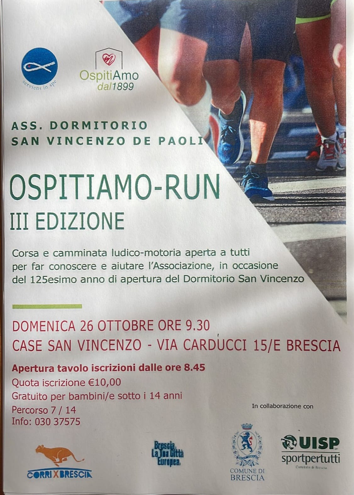 Corsa e camminata ludico motoria per sostenere l’Associazione Dormitorio San Vincenzo de Paoli.