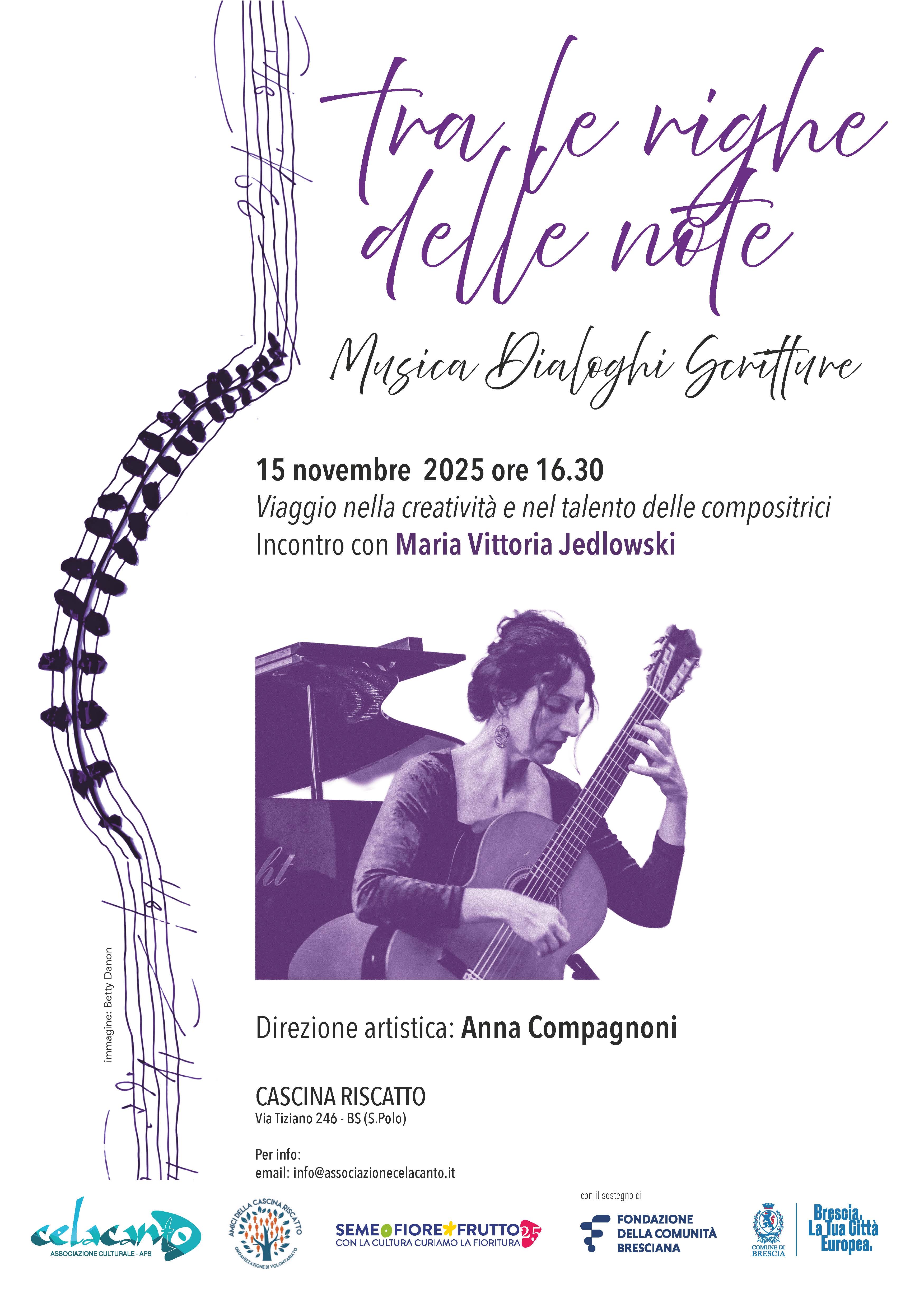 Incontro con la chitarrista Maria Vittoria Jedlowski, già docente presso il Conservatorio G. Verdi di Milano. Maria Vittoria Jedlowski, è concertista di chitarra classica e cantautrice, specializzata in musica contemporanea, improvvisazione con danzatori, repertorio composto da donne e favole in musica.