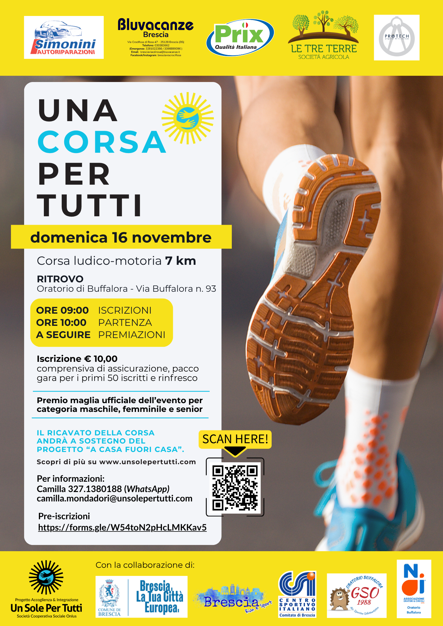 Prima edizione di “Una Corsa per Tutti”, una corsa ludico-motoria di 7 Km aperta a tutti con la quale vogliamo unire movimento, divertimento e inclusione!