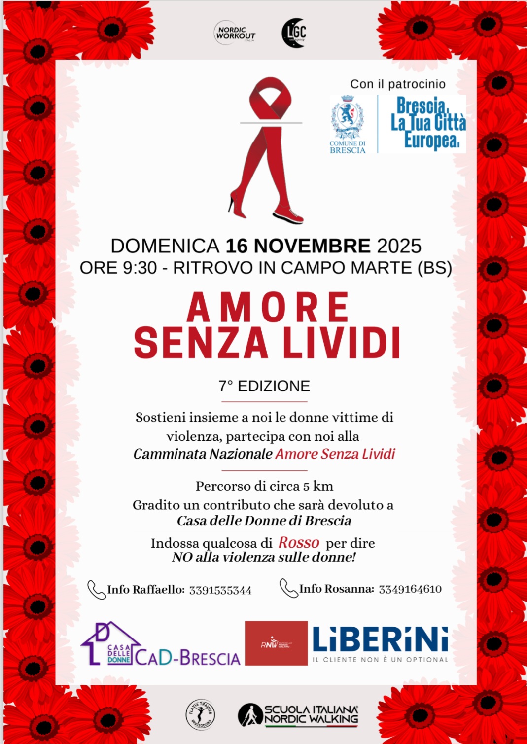 Camminata di circa 5 km per le vie cittadine per testimoniare contro la Violenza sulle donne!!! Indossa qualcosa di rosso!!! Evento col patrocinio del Comune di Brescia.