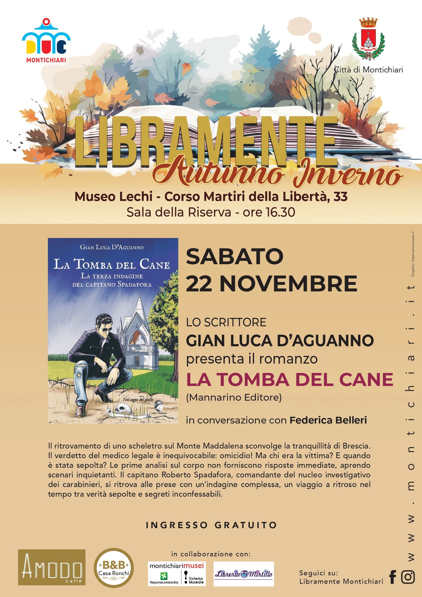 Quarto appuntamento della rassegna Libramente Autunno: lo scrittore bresciano Gian Luca D'Aguanno, in conversazione con Federica Belleri, presenterà il suo nuovo romanzo noir apparso per Mannarino Editore con al centro l'ormai celebre capitano Spadafora.