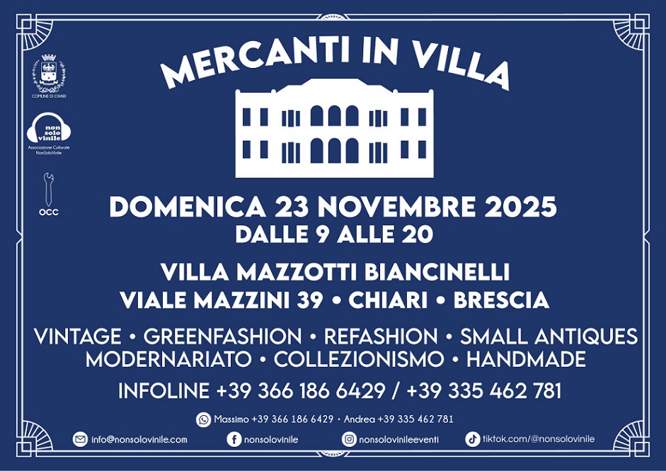 Mostra mercato Villa Mazzotti Biancinelli, villa pregevole tra le più belle del nostro territorio esempio di architettura in stile Liberty ed arricchita da giardini all'Italiana sarà la sede del nuovo vintage market che ci riporterà ai tempi della "belle epoque". All'interno delle sale della villa liberty che fu la residenza di uno dei fondatori delle mille miglia si svolgerà la terza edizione di mercanti in villa.