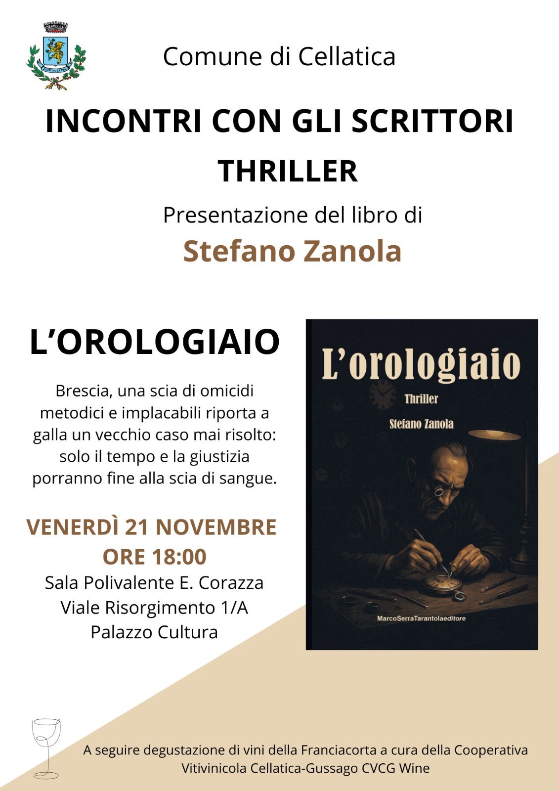 A seguire degustazione di vini della Franciacorta a cura della Cooperativa Bitivinicola Cellatica - Gussago CVCG Wine.