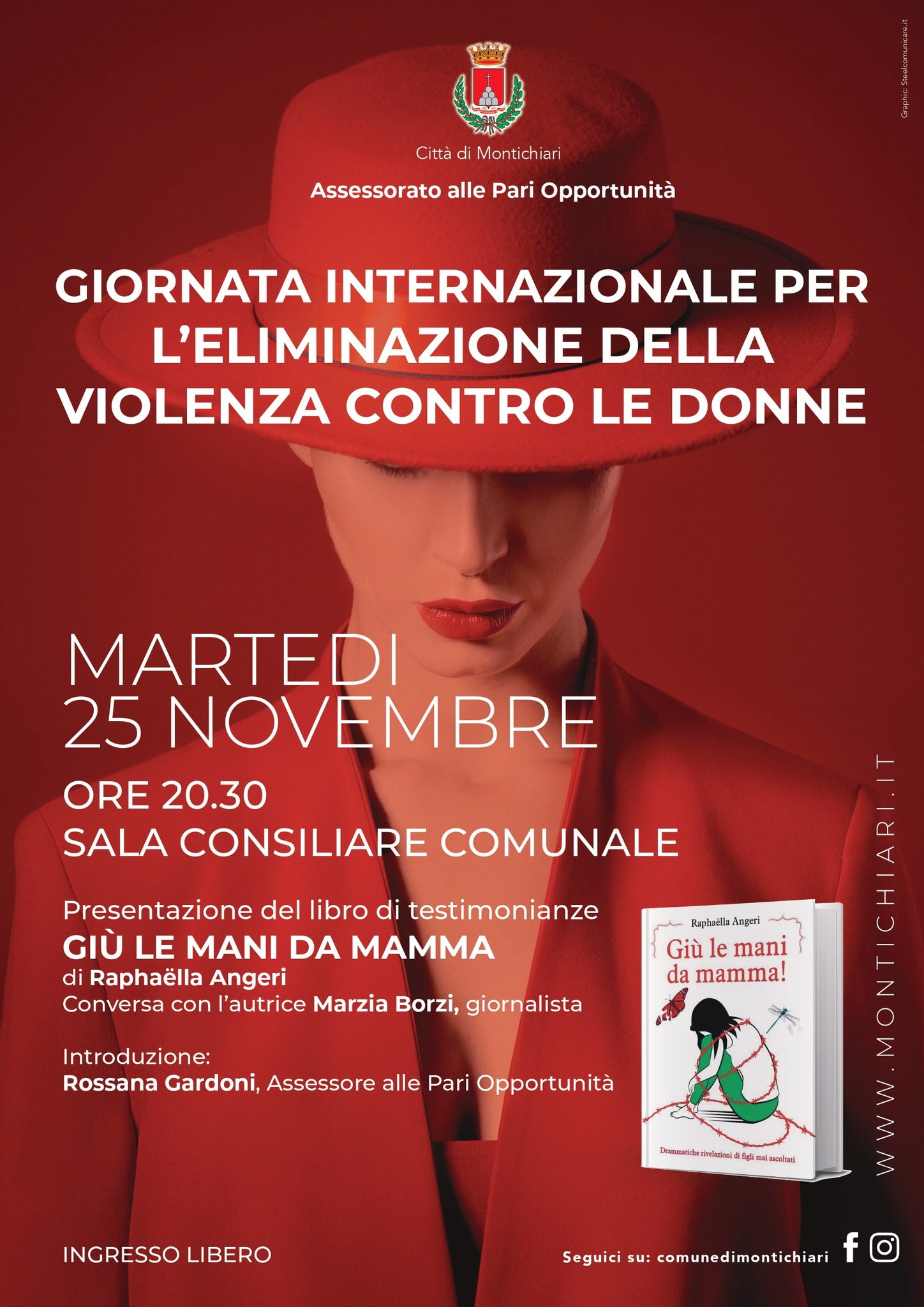 L'Assessorato alle Pari Opportunità del Comune di Montichiari organizza la presentazione del libro di Raphaella Angeri "Giù le mani da mamma!", raccolta di quattro testimonianze di figli le cui madri sono state violentate e abusate.