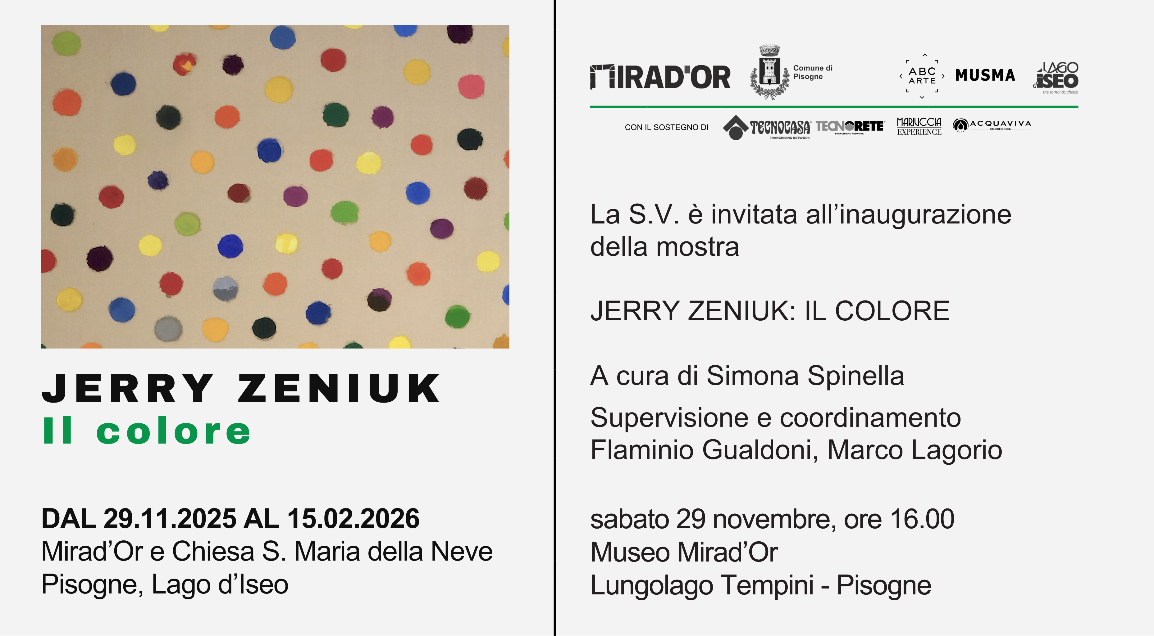 Un percorso di dieci opere, di cui tre inedite, per raccontare la ricerca artistica del noto pittore tedesco Jerry Zeniuk (Bardowick - Germania, 1945), da sempre interessato alla pittura come pratica spirituale.