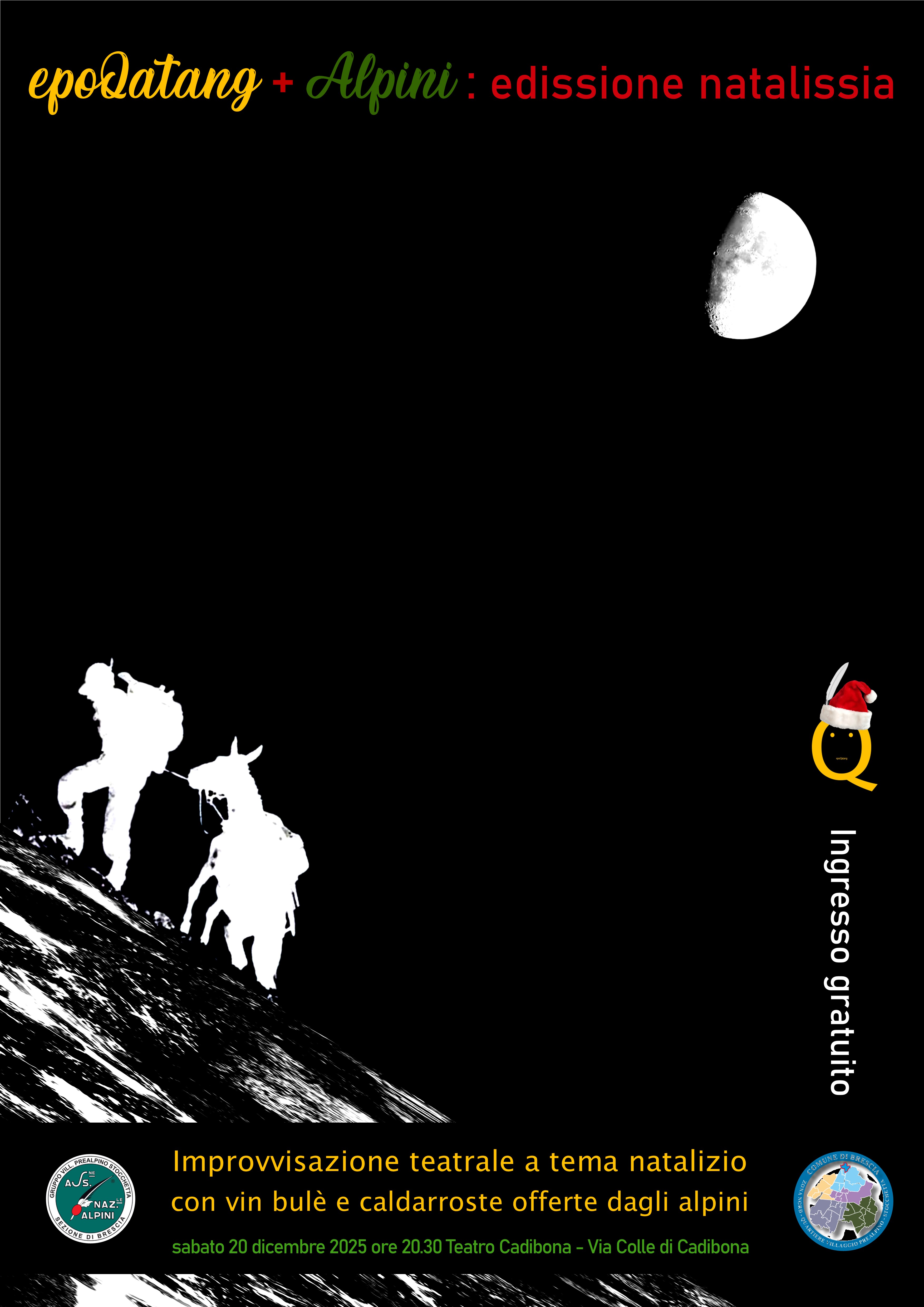 Spettacolo natalizio d'improvvisazione teatrale organizzato dal CdQ Prealpino-Stocchetta, a cura della compagnia epoQatang, con il gruppo Alpini del VIllaggio Prealpino, vin brulè e caldarroste.