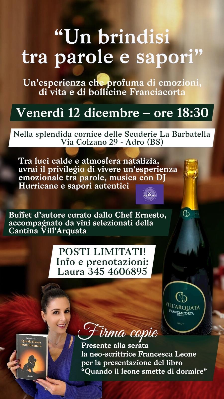 In un percorso fatto di parole, musica e gusto si terrà la presentazione del libro appena uscito "Quando il leone smette di dormire" della neo-scrittrice Francesca Leone.