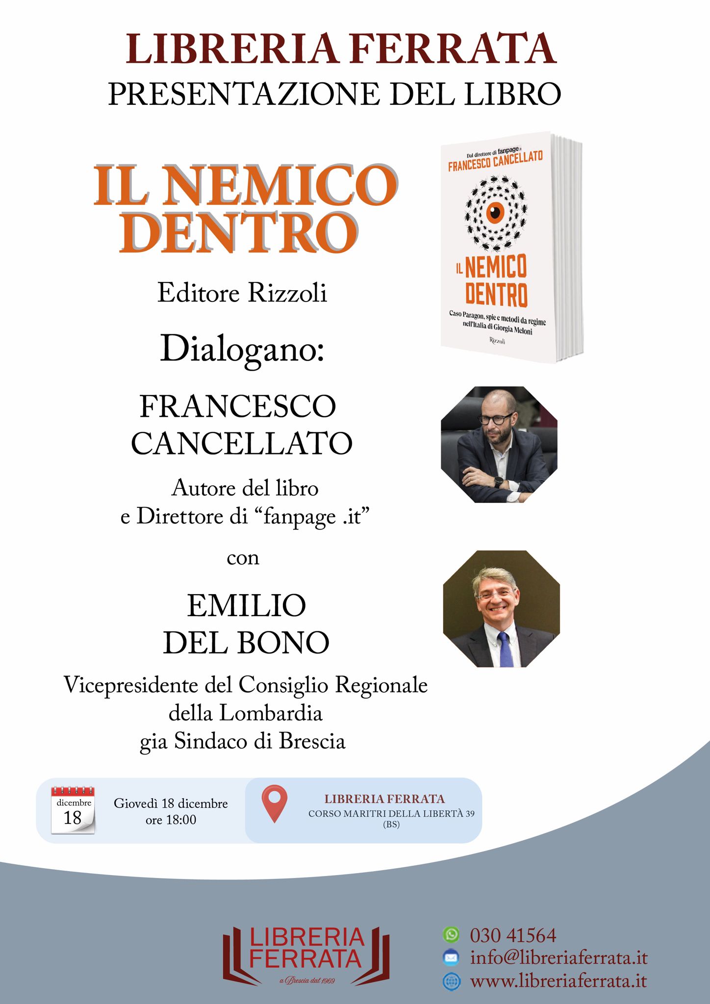 Il libro: Attraverso interviste e conversazioni con esperti e protagonisti di questa vicenda, da Franco Gabrielli a Nello Scavo, da Ciro Pellegrino a Matteo Renzi, Cancellato tratteggia il ritratto del «nemico dentro»: lo spyware nel nostro telefono, il nostro stesso disinteresse davanti a uno scandalo di queste proporzioni, ma soprattutto la ferita alla democrazia che rischia di infettare il nostro sistema di diritti.