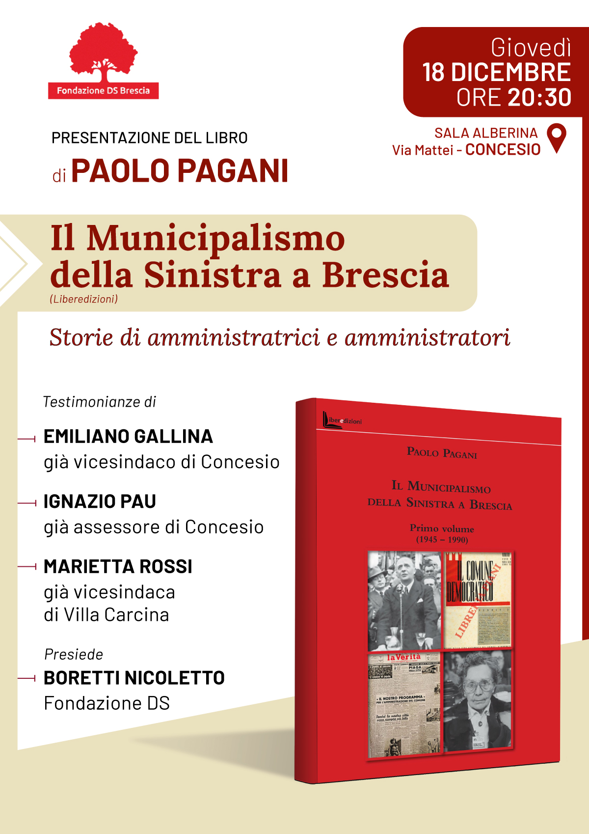 Fondazione DS Brescia organizza la presentazione del libro di Paolo Pagani Il Municipalismo della Sinistra a Brescia (Liberedizioni).