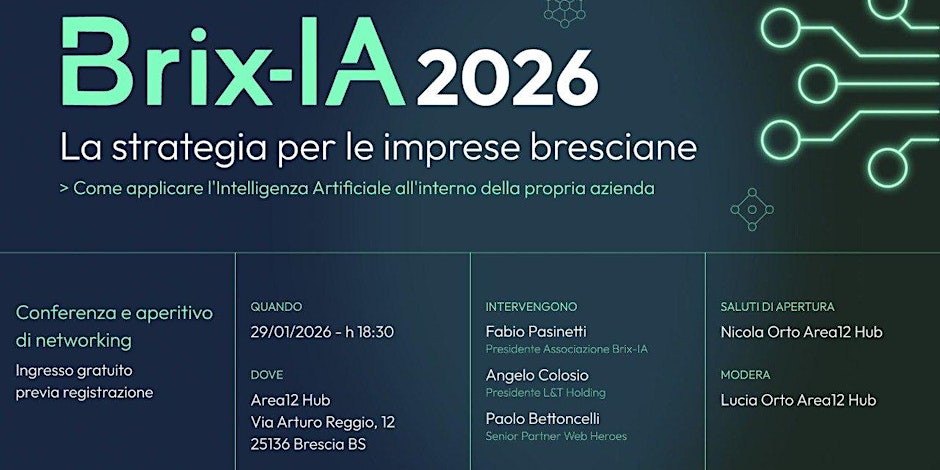 Evento Brix-IA: strategie pratiche per introdurre l'AI in azienda, casi reali e networking con imprenditori e professionisti.