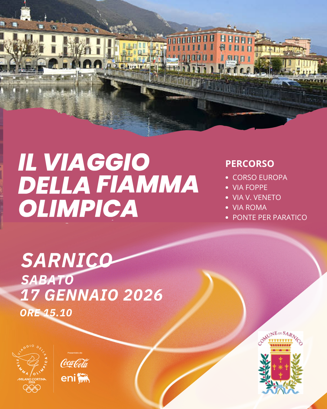 La Fiamma olimpica di Milano-Cortina 2026, attraversa Sarnico nella 41esima tappa del suo viaggio verso i Giochi Olimpici Invernali, portando con sé i valori universali dello sport, della pace e dell'incontro tra i popoli.