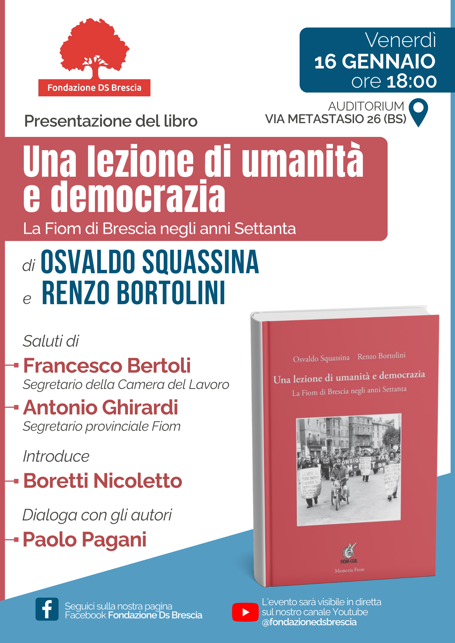 L’incontro sarà trasmesso anche in diretta streaming sul canale YouTube della Fondazione DS: clicca qui