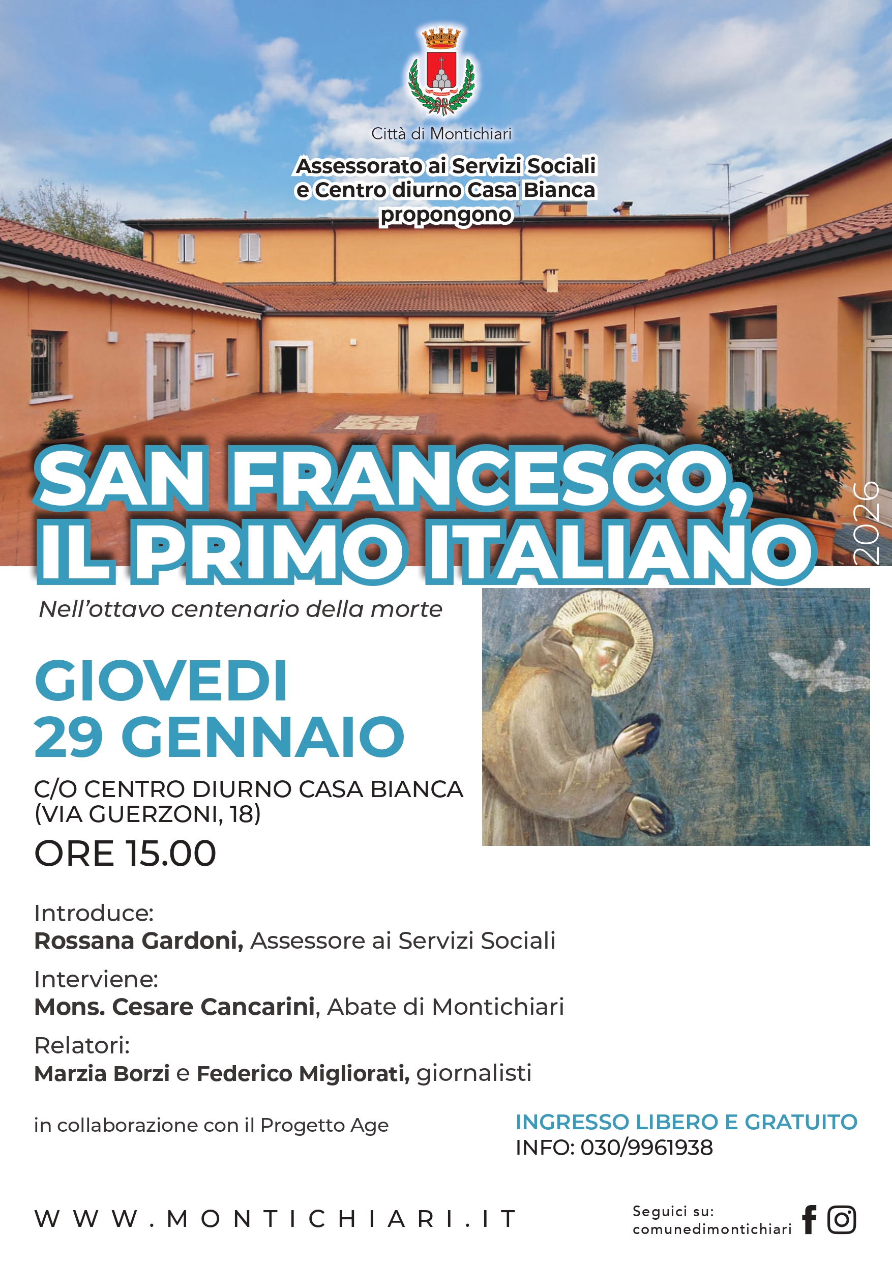 Nell'ottavo centenario della morte il Centro diurno Casa Bianca rende omaggio a San Francesco con un incontro promosso dal Comune di Montichiari in collaborazione con la Cooperativa La nuvola nel sacco e il gruppo volontari del Centro, nell'ambito del Progetto Age.