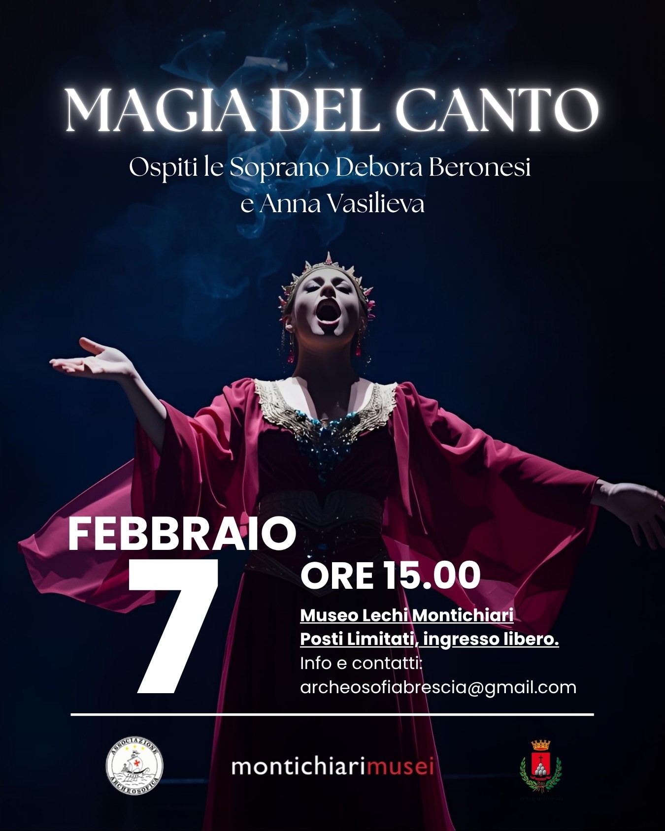 È da questa premessa che prende avvio l’incontro “Magia del canto”, nell’ambito del ciclo culturale “Lo scrigno della musica”, promosso dall’Associazione Archeosofica – Sezione di Brescia, in collaborazione con il Comune di Montichiari e Montichiari Musei.