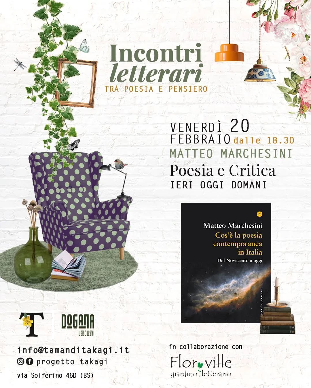 Nell'ambito della rassegna Incontri letterari - Tra poesia e pensiero promossa dalla libreria Florville e da Progetto Takagi