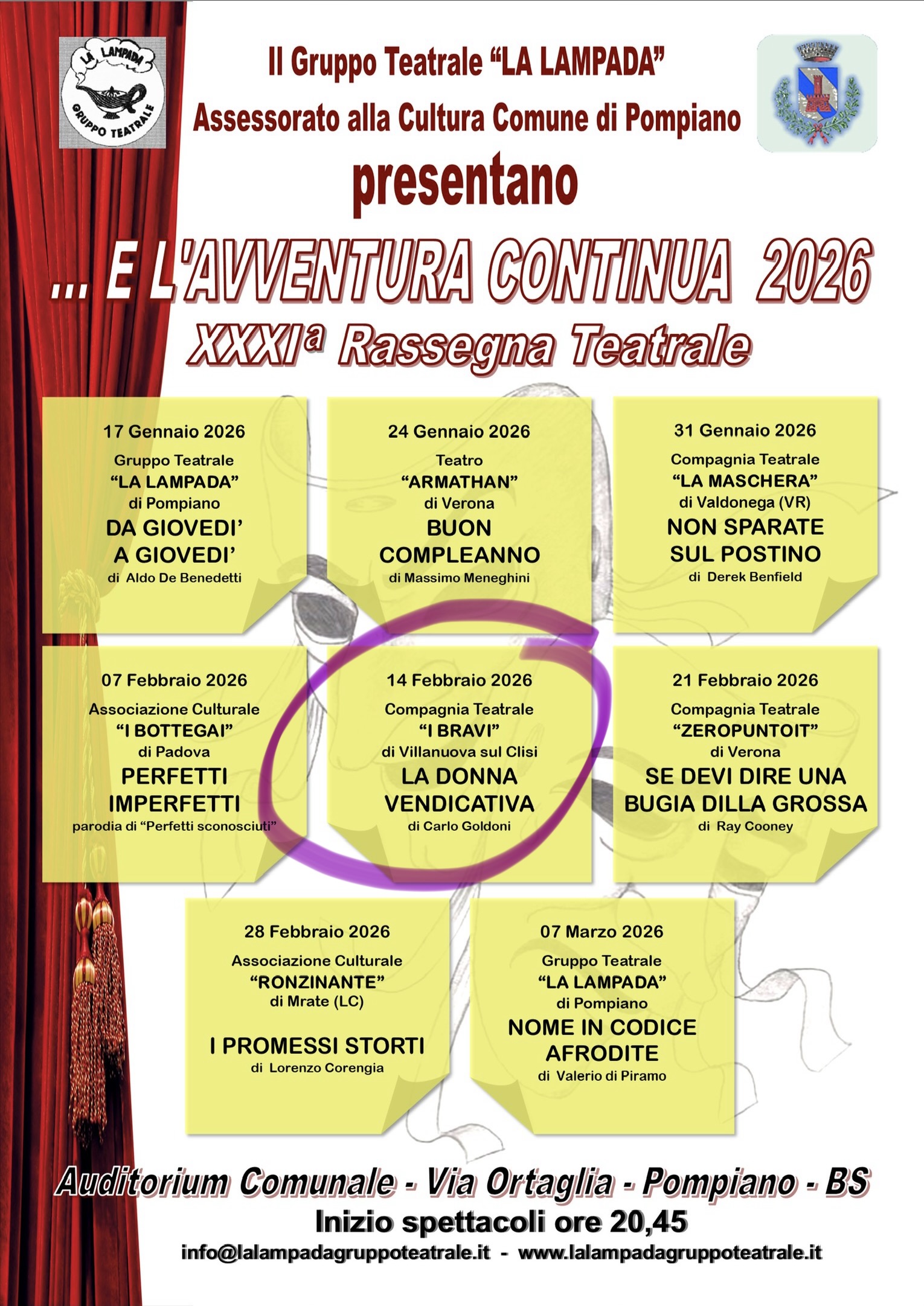 Per la quinta serata della Rassegna Teatrale "… E l'avventura continua" la Compagnia Teatrale "I Bravi" propone "La Donna Vendicativa".