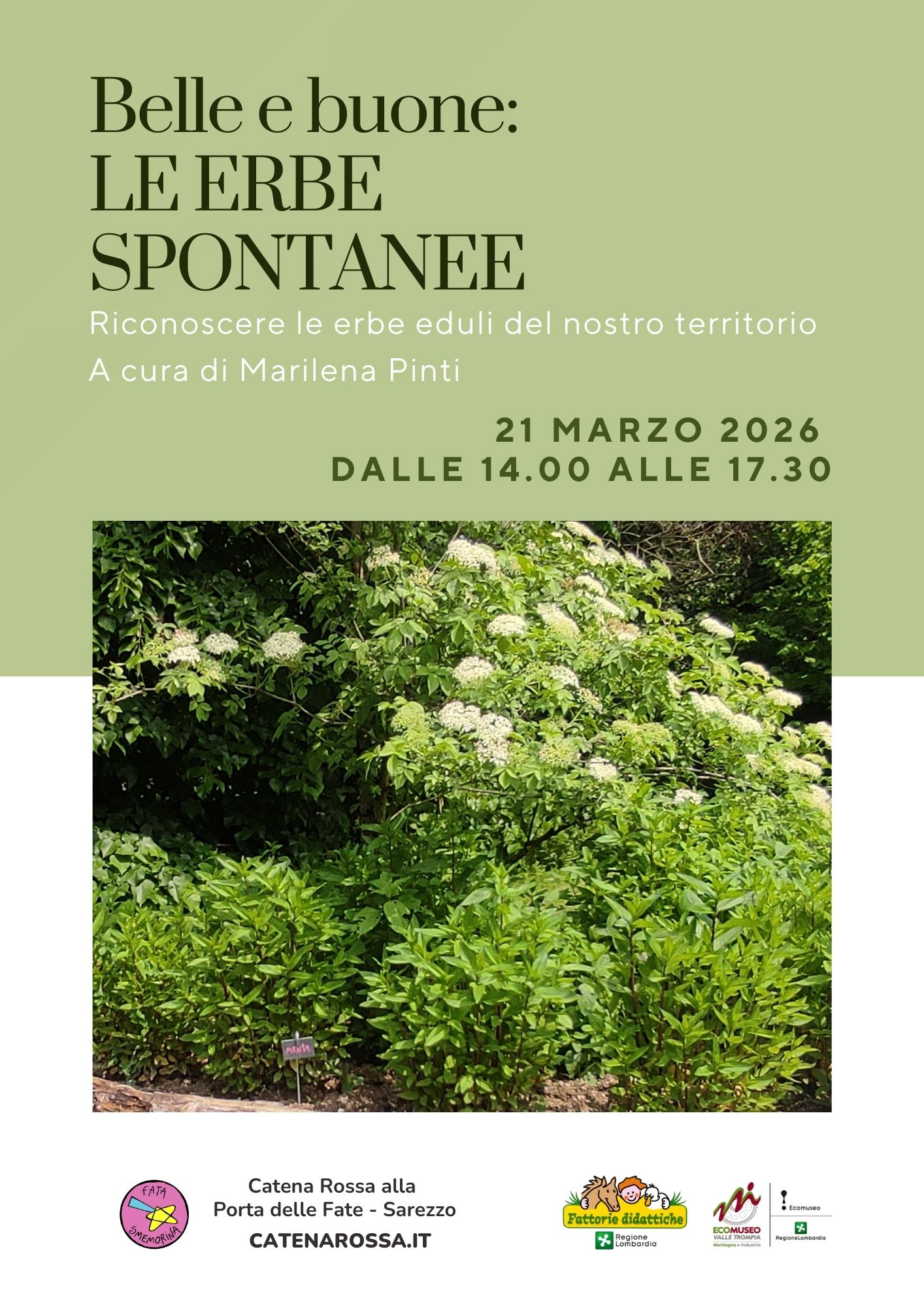 Un Corso per riconoscere le Erbe Spontanee e scoprire come utilizzarle nell'alimentazione e per il nostro benessere. Imparare per non sbagliare: non tutti i vegetali sono adatti al nutrimento umano. A volte è facile confondere un'erba edule con una tossica: solo il saperla riconoscere correttamente può evitare conseguenze anche letali. Per questo ci sarà una parte teorica con proiezione immagini e spiegazioni su come si usano in cucina e per il proprio benessere con assaggio di tisane. ed in seguito uscita nel prato e bosco per individuarle nel loro habitat naturale.