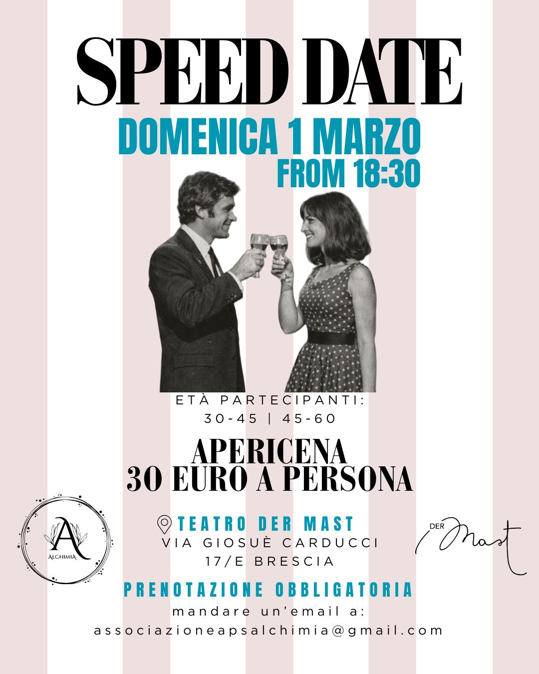 Il Teatro Der Mast ospiterà una nuova edizione dello Speed Date, un appuntamento dedicato a chi ha voglia di conoscere nuove persone in modo diretto, spontaneo e senza filtri.