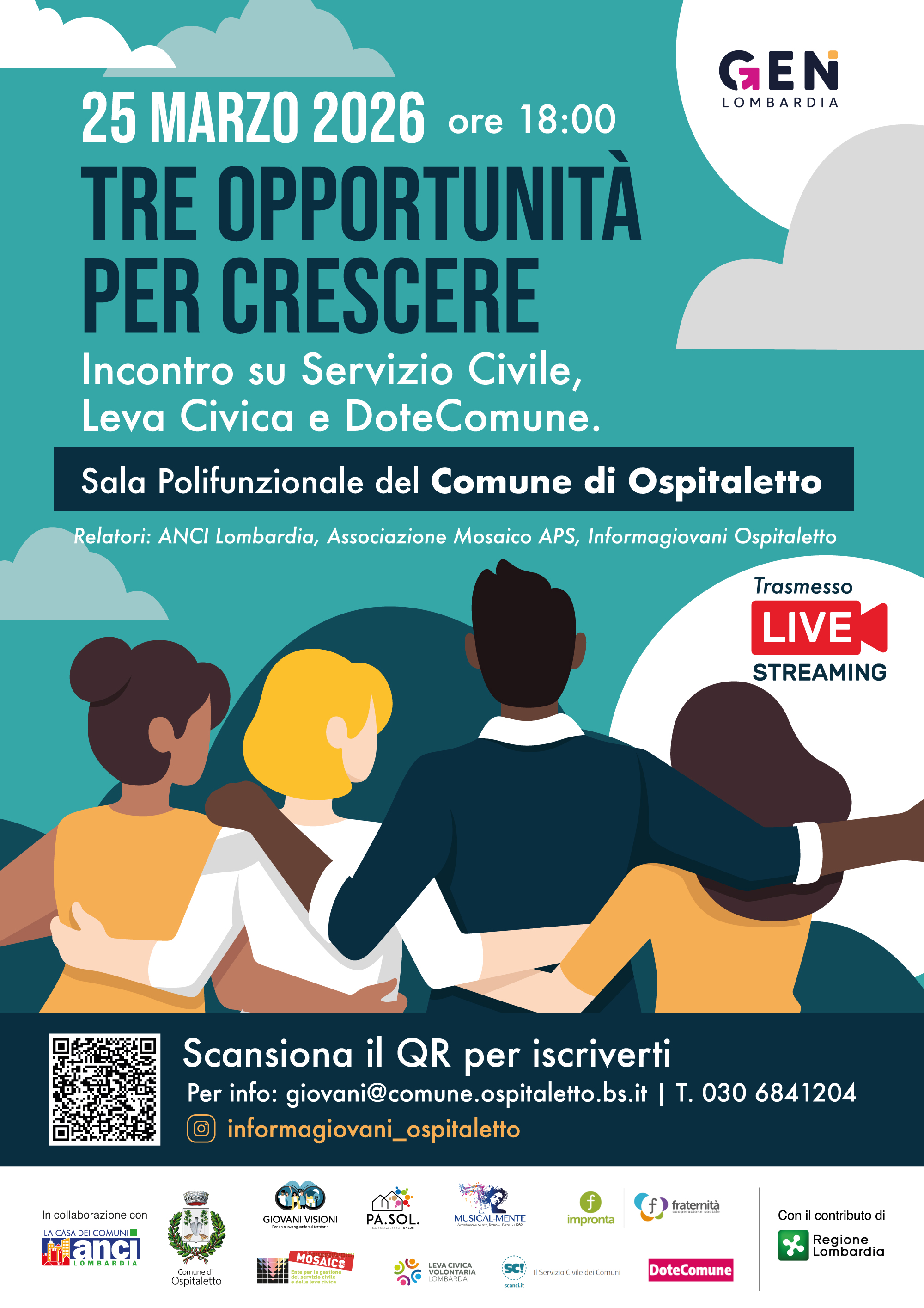 Tre possibilità, tre modi simili di mettersi in gioco, crescere e fare esperienza, ma che presentano differenze importanti. L'incontro è pensato per presentare in modo chiaro e pragmatico i tre programmi. Iscrizioni aperte sia in presenza che da remoto! Chi partecipa in presenza avrà un momento bonus dedicato ai progetti attivi sul territorio (Ospitaletto, zone limitrofe, provincia di Brescia) e al confronto diretto con gli operatori per domande individuali e chiarimenti personalizzati.