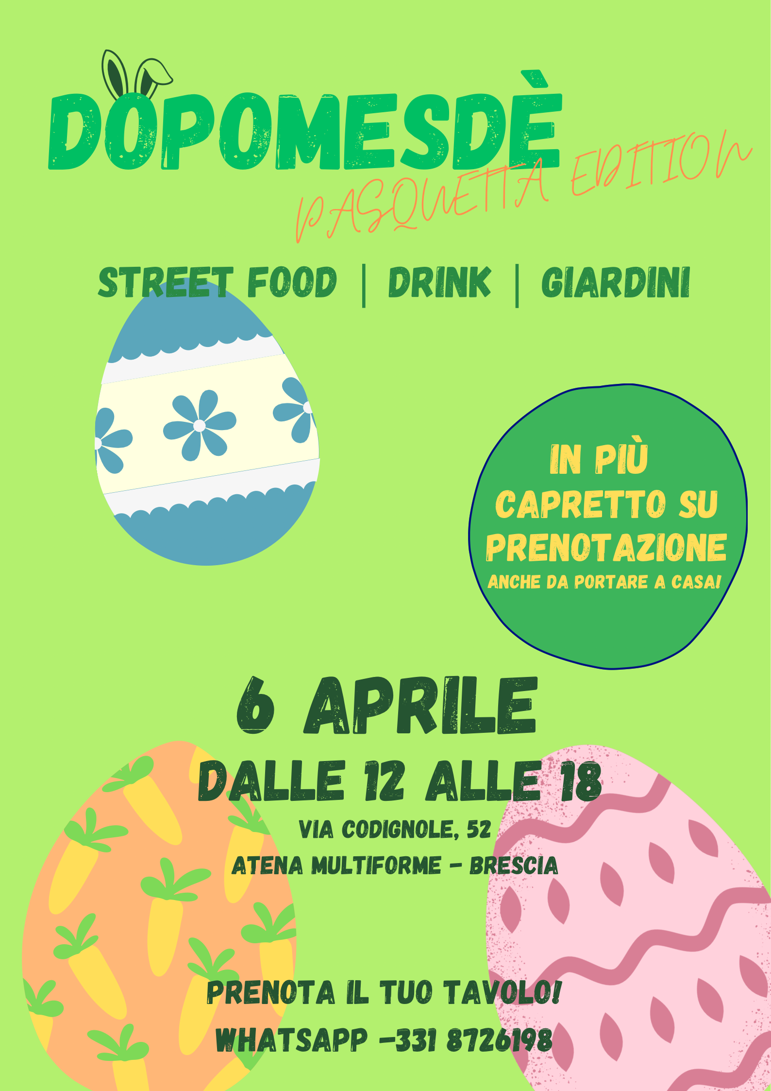 A pasquetta ci pensiamo noi! Inauguriamo i giardini con una giornata all'aperto all'insegna dello street food alla griglia, anche vegetariano; birra, pirlo e vino del territorio. Ti basta prenotare il tuo tavolo e goderti la giornata!