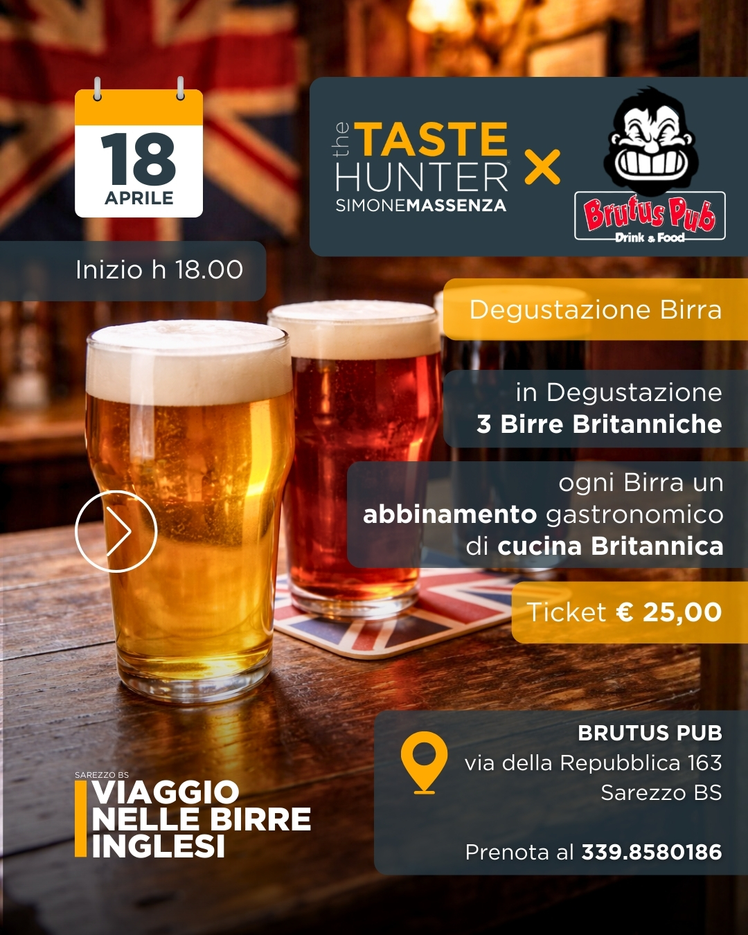 Degustazione guidata dedicata alla tradizione brassicola britannica condotta da Simone Massenza - The TASTE Hunter, giudice e degustatore.