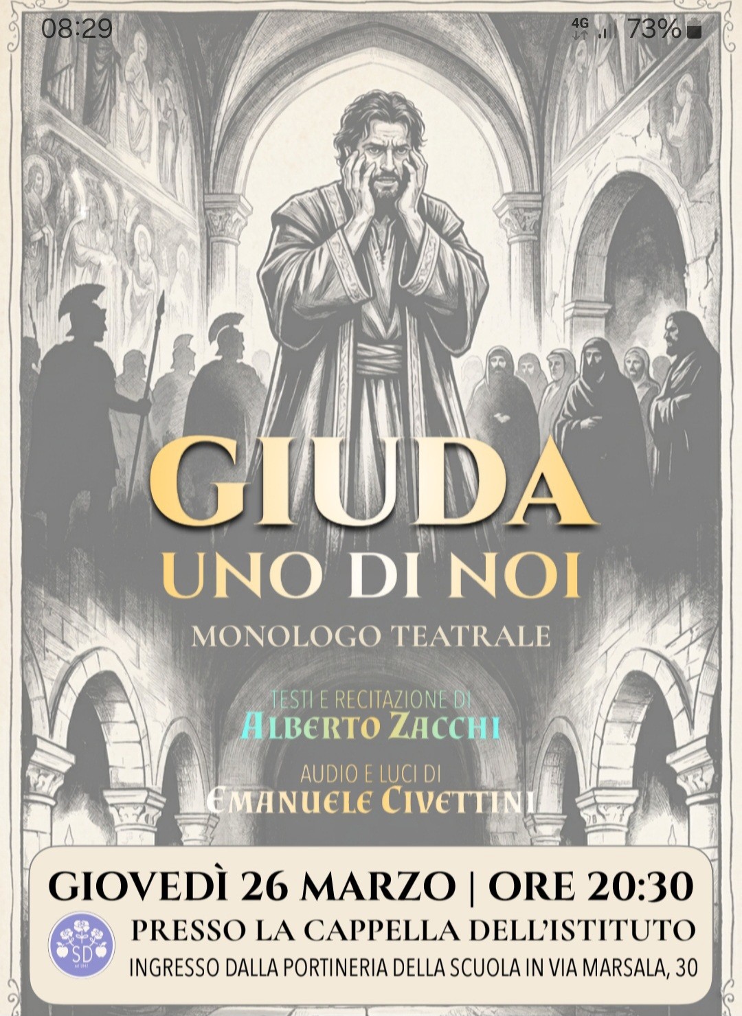 Monologo teatrale a cura di Alberto ZacchiTecnico audio e luci: Emanuele Civettini
