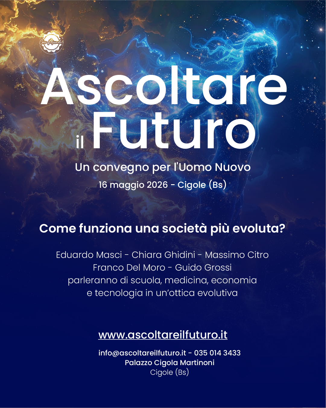 Ascoltare il Futuro è una giornata per immergersi nell'atmosfera di un Futuro che vede al centro l'Essere Umano. Un'occasione per ascoltare Uomini e Donne la cui voce è un richiamo verso il domani.