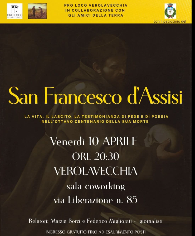 La vita e le opere del "Folle di Dio" sono al centro dell'iniziativa promossa da Pro Loco e Amici della Terra con il patrocinio del Comune, a cura dei giornalisti Marzia Borzi e Federico Migliorati.