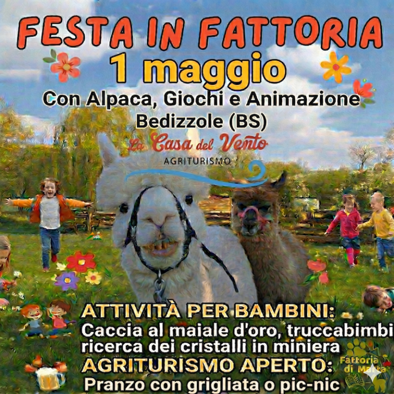 Quest'anno, il tradizionale Primo Maggio si trasforma in un'avventura indimenticabile presso l'Agriturismo Casa del Vento. Libertà totale: potrete scegliere se portarvi il cibo da casa per un pic-nic sul prato oppure usufruire del nostro servizio di ristorazione con i piatti tipici della tradizione. Un'Esperienza Unica: Primo Maggio con gli Alpaca e non solo La vera star della Festa sono loro: i nostri dolcissimi alpaca. Questi animali, noti per la loro docilità e simpatia, sono i compagni ideali per avvicinare i più piccoli alla natura in totale sicurezza.