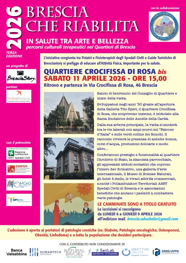 Il team di Brescia che Riabilita annuncia una nuova edizione della passeggiata culturale e terapeutica nel suggestivo Quartiere Crocifissa di Rosa a Brescia.