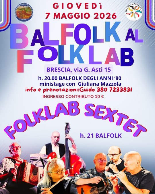 In collaborazione tra il FolkLab Brescia e il folk del Calzino Spaiato, si terrà all'oratorio del Beato Palazzolo (zona Lamarmora, Teatro Tenda) una serata di BALLO FOLK aperta a tutti, ultima data della stagione 2025/2026.