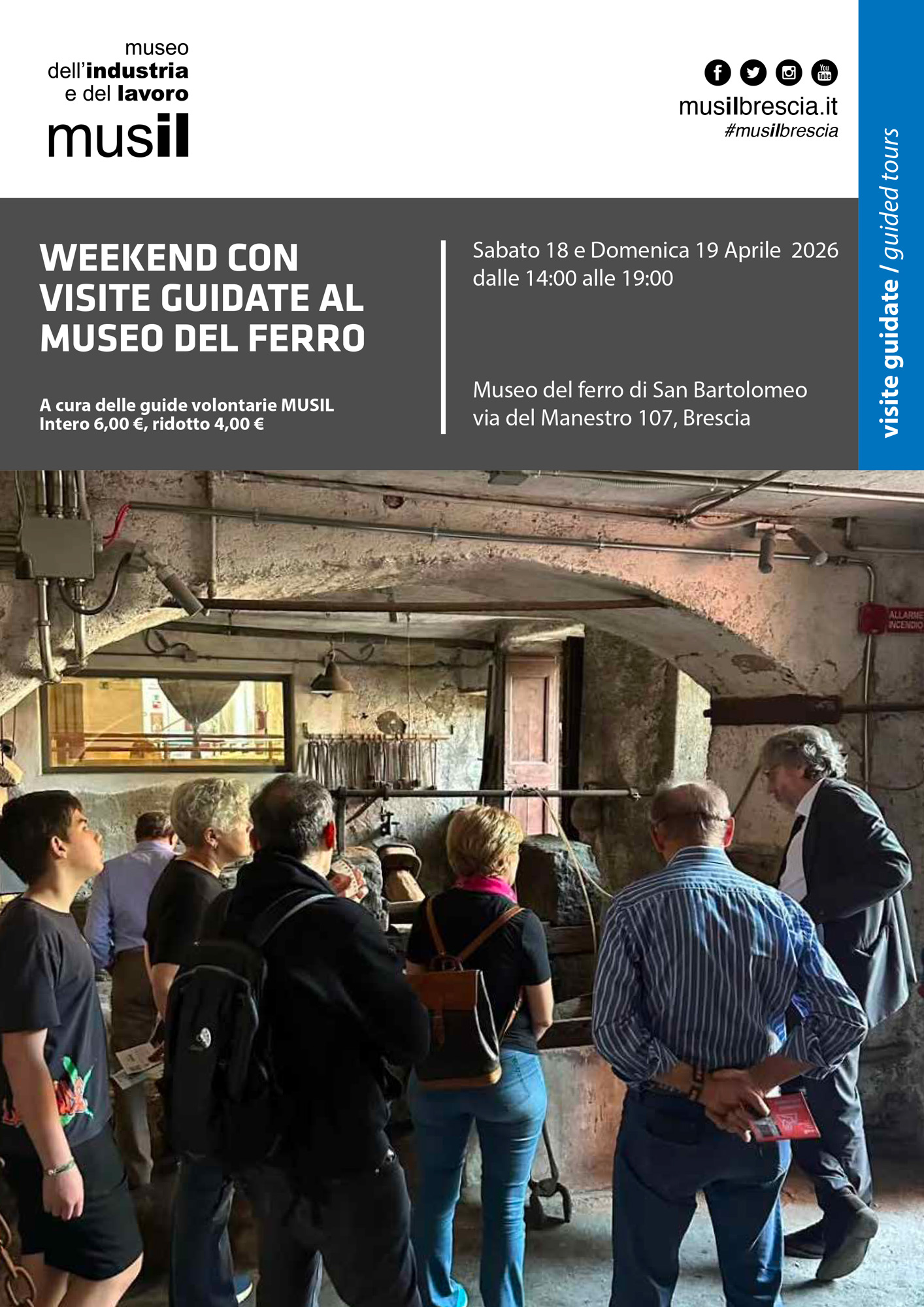 Il museo sarà aperto sabato e domenica dalle ore 14:00 alle ore 19:00, le visite saranno a cura delle guide volontarie MUSIL.
