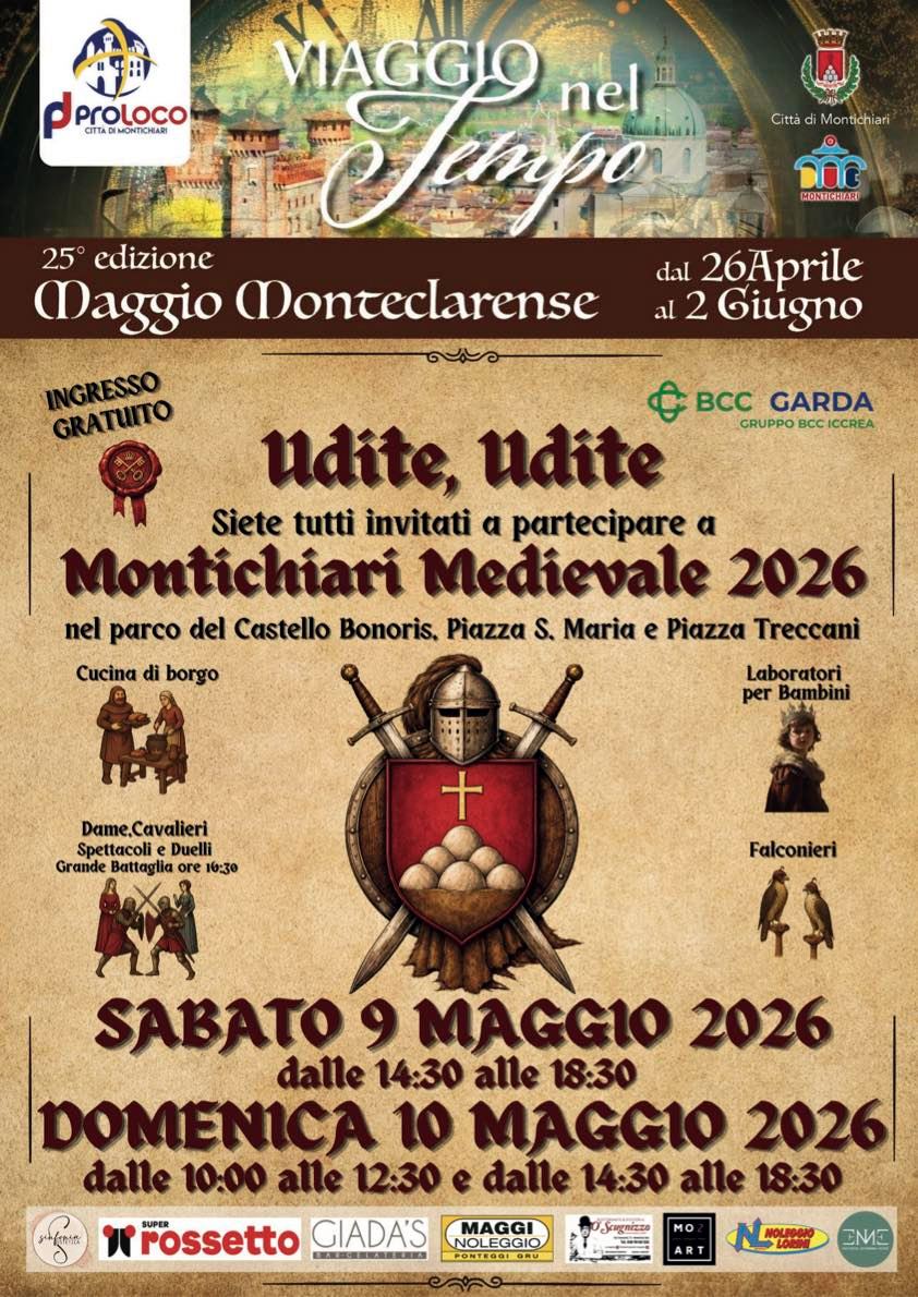 Cucina di borgo, laboratori medievali, rievocazioni storiche, spettacoli e duelli, dame e cavalieri, falconieri e molto altro daranno vita all'atmosfera medievale del Viaggio nel Tempo, parte del più vasto programma del Maggio Monteclarense. I vari momenti di festa si terranno nel parco del Castello Bonoris, in piazza Treccani e in piazza Santa Maria e sono ideati dalla Pro Loco Città di Montichiari in collaborazione con il Comune.